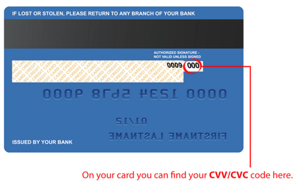 Please copy your CVV/CVC code from the back of your card and continue with your payment.